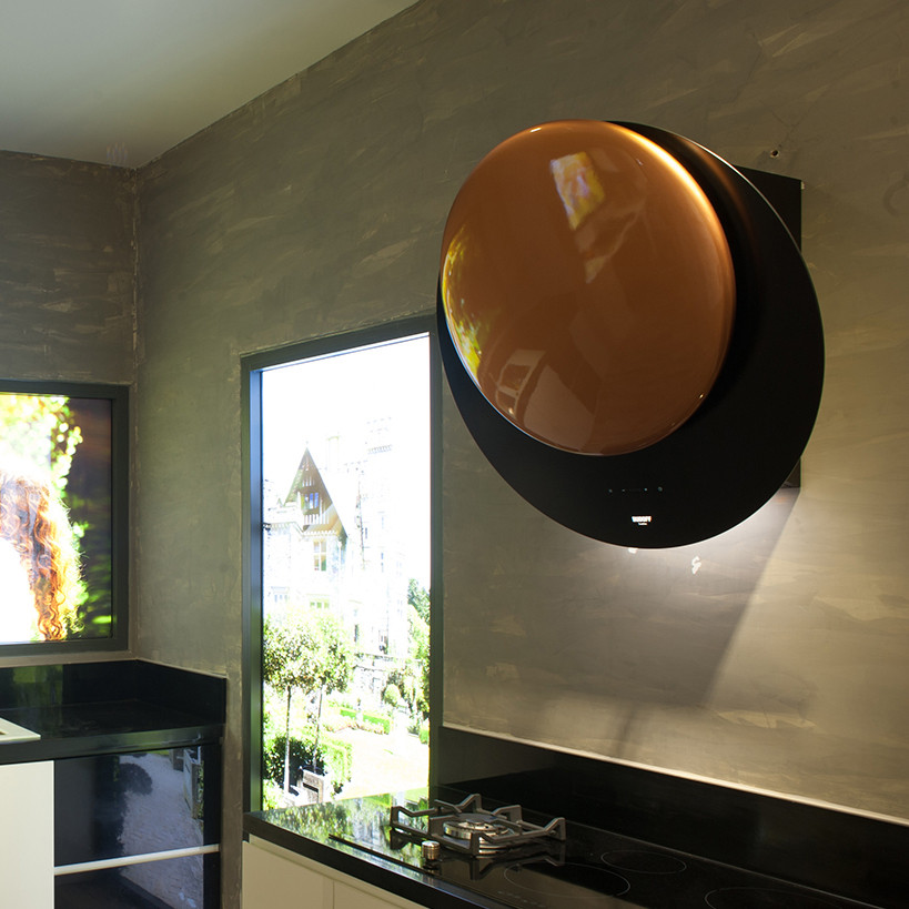 Máy hút mùi treo tường Iris BC là sản phẩm nằm trong bộ sưu tập “Ceramic Handmade” của kỹ sư thiết kế người Anh Markus Persson, lấy ý tưởng từ những hành tinh trong dài ngân hà, Iris mang vẻ bí ẩn với vỏ máy hình tròn, chế tạo thủ công từ hợp kim sắt cao cấp được phủ lớp sơn đặc biệt và Inox 304 với vòng ngoài màu đen, vòng trong màu đồng đỏ chắc hẳn Iris sẽ là điểm nhấn đặc biệt cho phòng bếp gia đình bạn.