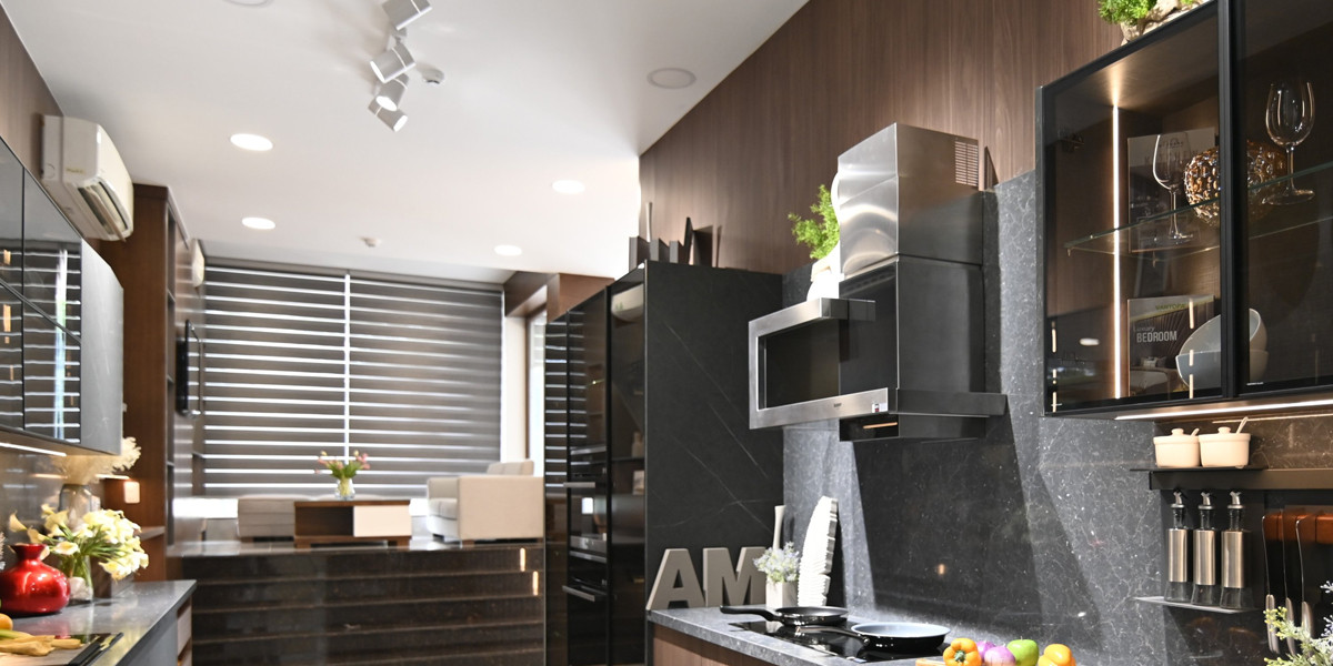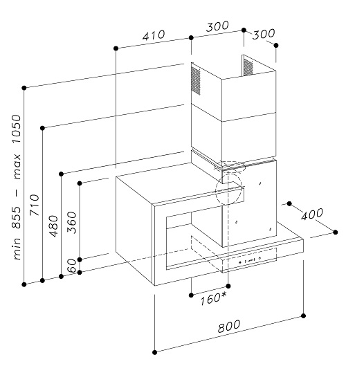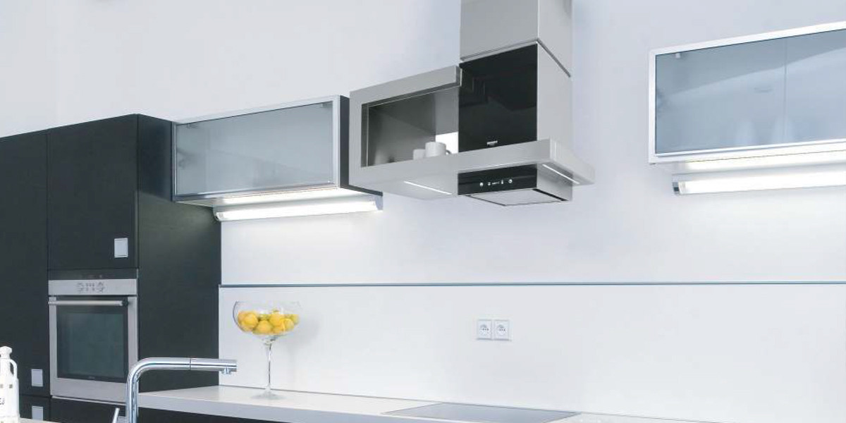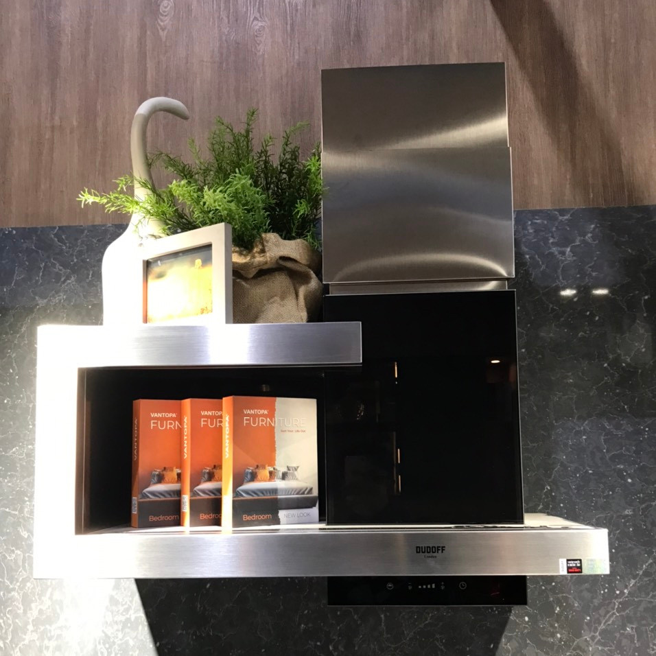 Máy hút mùi áp tường trang trí kính đen và Inox 304.