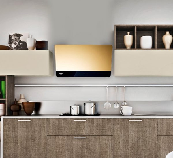Máy hút mùi áp tường trang trí bề mặt kính.