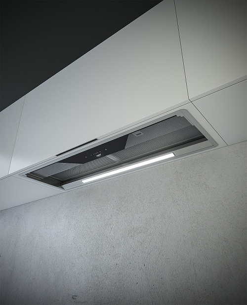 Máy hút mùi âm tủ, Inox kết hợp kính trắng.