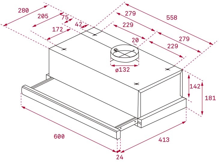 Máy Hút Mùi TEKA TL 6310 với thiết kế sang trọng, tinh tế: kiểu dáng đơn giản mà sang trọng, màu sắc và các chi tiết máy kết hợp hài hòa mang tính thẩm mỹ, tạo điểm nhấn cho không gian bếp. Máy Hút Mùi TEKA TL6310 là loại hút mùi âm tủ, có kích thước 600mm phù hợp với các kích thước chuẩn máy hút mùi phổ biến hiện nay, dễ dàng lắp đặt cho các không gian bếp, phù hợp lắp đặt cho nhiều không gian bếp của gia đình..