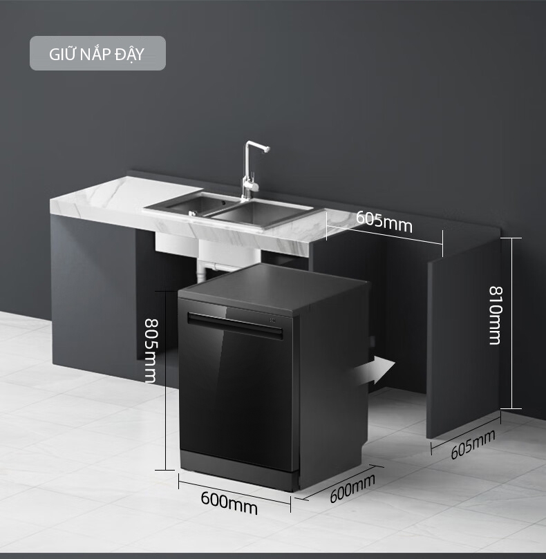 - Kích thước khoét âm tủ: R605 x S(580-605) x C(780-810) mm