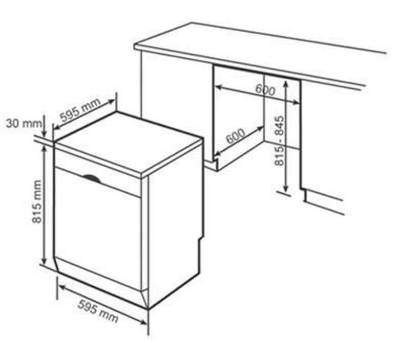 - Kích thước sản phẩm (RxSxC): 600 x 600 x 845 mm