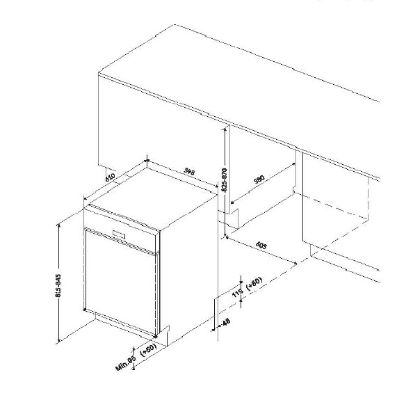 - Kích thước khoét âm tủ: R605 x S605 x C(825-855) mm