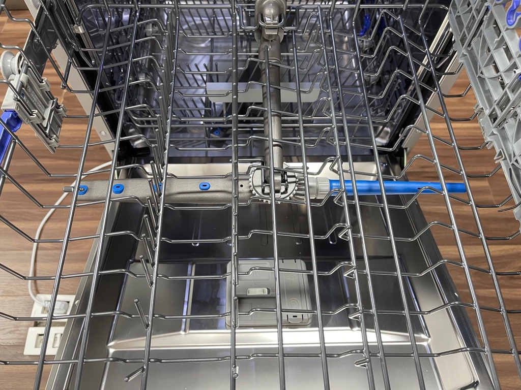 Giàn rửa trên cùng thường để xếp các vật dụng như: dao, kéo hay đũa, thìa, dĩa, muỗng... Giàn rửa ở giữa chủ yếu rửa các loại bát đĩa nhỏ, cốc, ly, vật dụng nhỏ không tốn diện tích. Giàn rửa dưới cùng của máy có khoang chứa rộng hơn, cho phép rửa các loại nồi nấu, chảo, bát đĩa to.... Các loại đĩa thìa, người dùng có thể cho vào vào giỏ màu xám ở trong khay rửa dưới cùng hoặc xếp làm ngang, sao cho các không có bất cứ vật dụng nào cản trở vào tay quay gạt nước của máy.