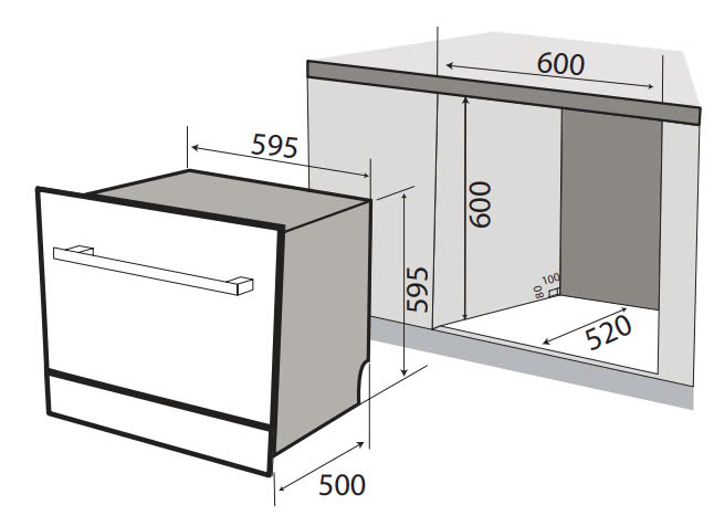+ Kích thước thân sản phẩm: 595R x 500S x 595C mm