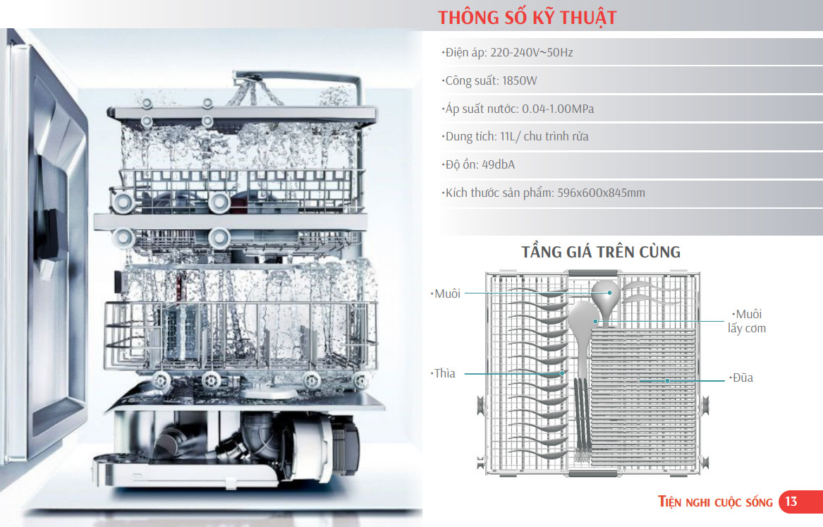 •Các tay rửa trên, giữa và dưới rất mạnh, tiết kiệm năng lượng A+