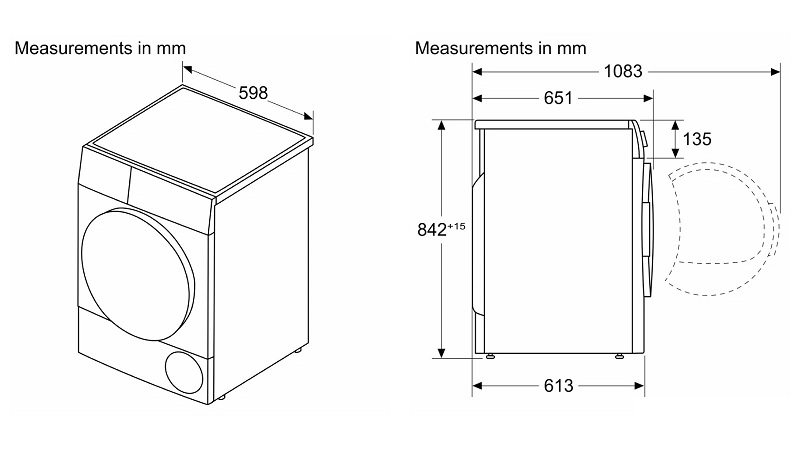 - Máy sấy bơm nhiệt Bosch có thiết đơn giản, gam màu trắng tinh tế, trang nhã, dễ dàng hòa hợp với không gian phòng giặt hoặc khu vực giặt giũ của gia đình bạn.