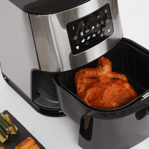 – Đặc biệt, nhờ có quạt đối lưu, luân chuyển nhiệt lượng đều trong nồi chiên không dầu Malloca cho thức ăn chín đều.