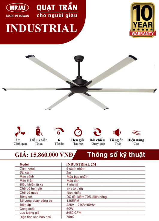 THÔNG TIN SẢN PHẨM QUẠT TRẦN TRANG TRÍ MR.VŨ INDUSTRIAL 2M