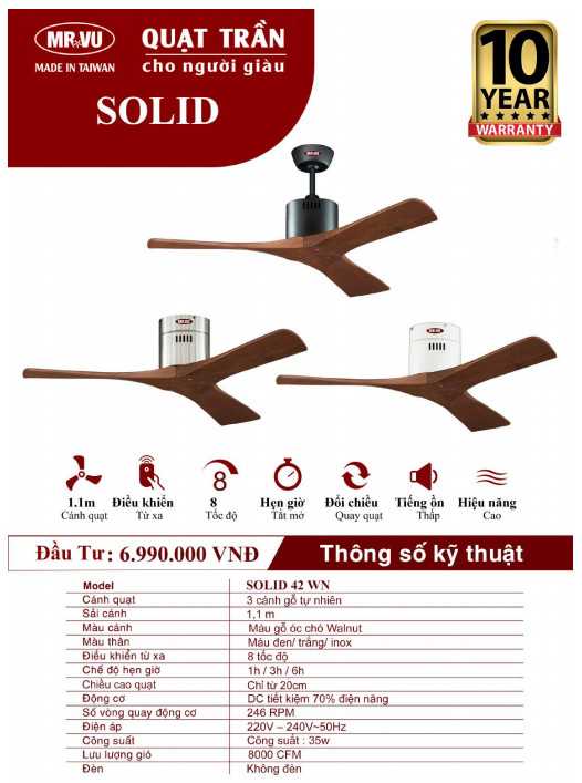 THÔNG TIN SẢN PHẨM QUẠT TRẦN CHO NGƯỜI GIÀU MR.VŨ SOLID 42 WN