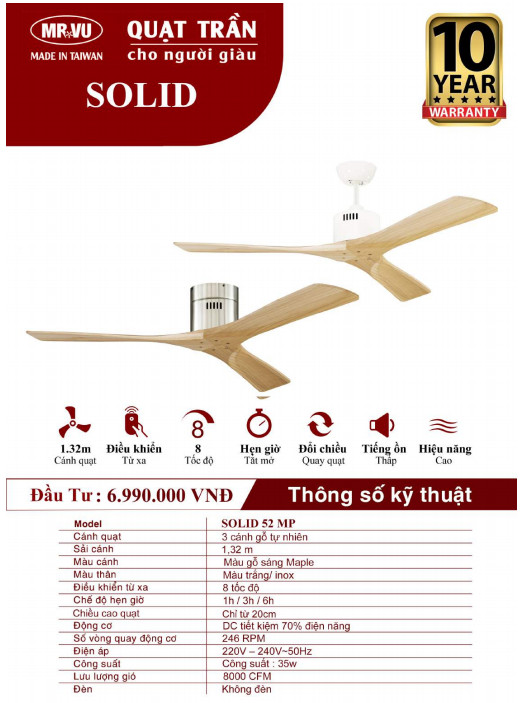 THÔNG TIN SẢN PHẨM QUẠT TRẦN CHO NGƯỜI GIÀU MR.VŨ SOLID 52 MP