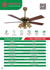 Để giúp bạn nắm rõ hơn thông tin quạt trần trang trí đèn LED 5 cánh gỗ Italia FY503 hãy theo dõi các thông số kỹ thuật của sản phẩm này nhé!