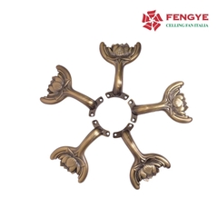 Quạt trần FY503 với thiết kế với 5 cánh gỗ thuôn dài xếp xung quanh thân quạt như 5 cánh hoa mang đến vẻ đẹp trang nhã và sang trọng. Điểm nhấn của sản phẩm này nằm ở phần tay bắt cánh với tạo hình bông hoa sen đang nở rộ mang đậm nét văn hóa Việt tinh khiết mà quý phái. Không chỉ mang nét đẹp truyền thống, thiết kế nghiêng 14 độ còn giúp tạo ra lưu lượng gió tốt khi động cơ quay và giảm thiểu tối đa tiếng ồn. Nếu bạn đang muốn tìm mẫu quạt trần không chỉ đáp ứng công năng làm mát, chiếu sáng mà còn là sản phẩm trang trí nội thất sang trọng thì sản phẩm này đáng để bạn tìm hiểu và lựa chọn.