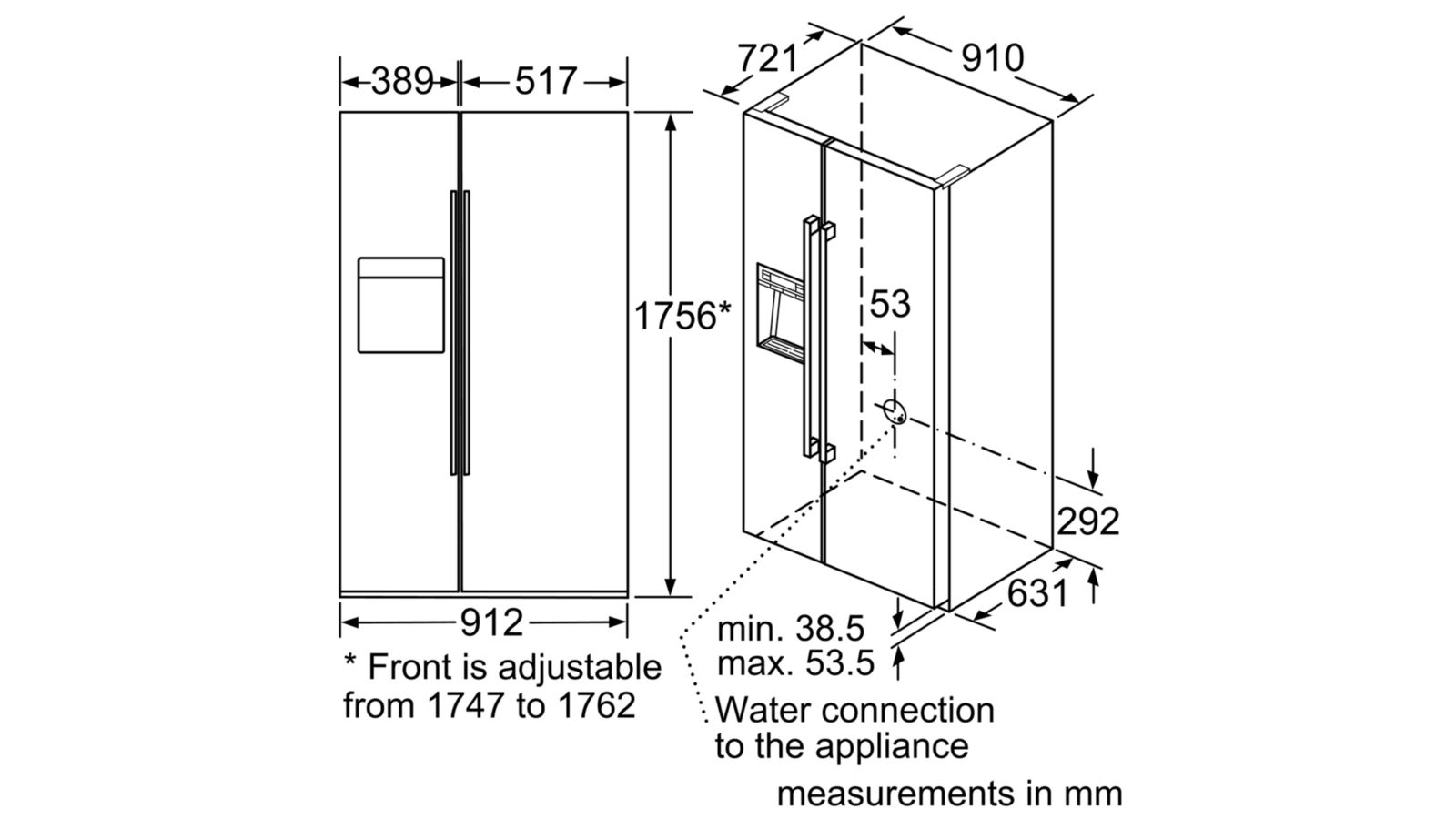 Cao 1756 x Rộng 912 x Sâu 732 mm