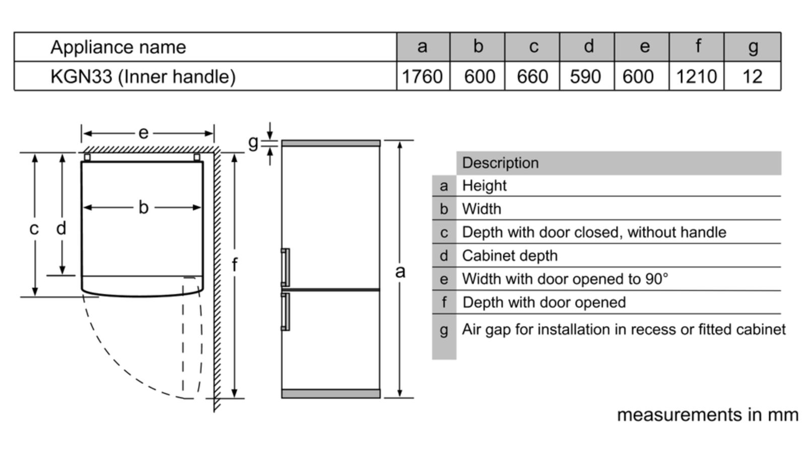 Cao 1760 x Rộng 600 x Sâu 660 mm