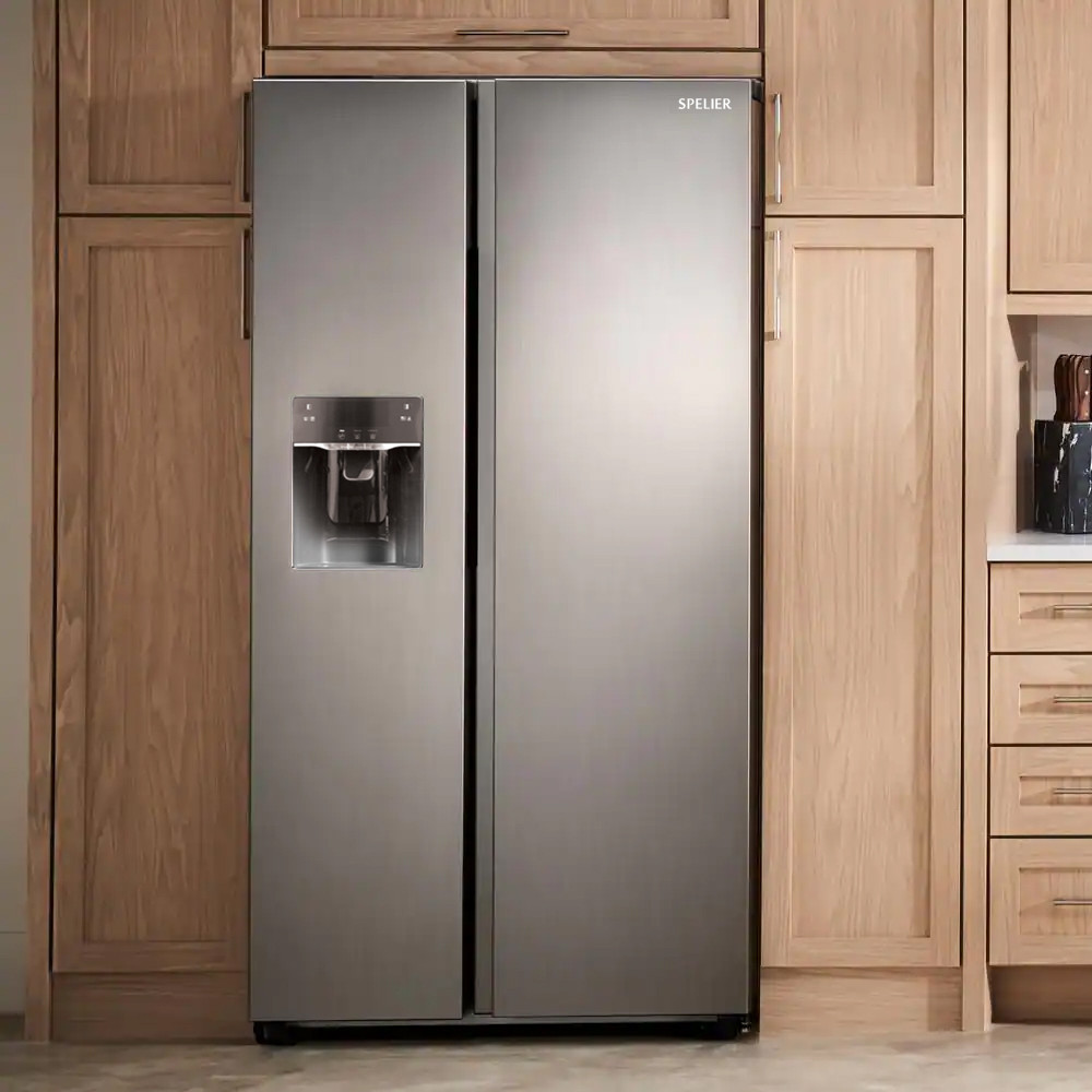 Tủ Lạnh Spelier SP 570 IT-SS có thiết kế sang trọng với 2 cánh cửa tủ, màu bạc tinh tế có dung tích lớn có thể đặt ở phòng khách hoặc phòng ăn, tôn lên vẻ sang trọng cho căn nhà của bạn.