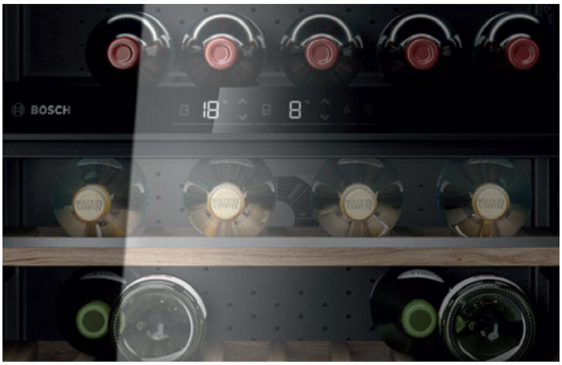 Tủ ướp rượu vàng mới của Bosch cung cấp hai các vùng nhiệt độ có thể điều chỉnh riêng biệt (đỏ và trắng )